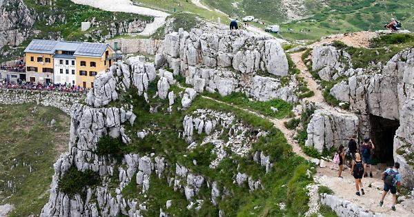 Il rifugio Achille Papa sul Monte Pasubio visto dalla Strada militare delle 52 gallerie