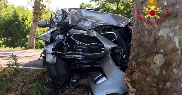 L'auto finita contro un platano a Lonigo