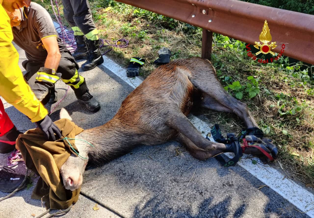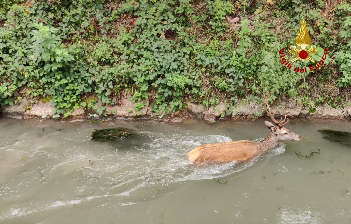A Rosà un cervo non riesce a risalire le sponde di un canale. Sono intervenuti i vigili del fuoco che hanno sedato l’animale e poi l'hanno recuperato. Trasportato sul Monte Grappa è stato liberato in montagna dalla Polizia provinciale.
