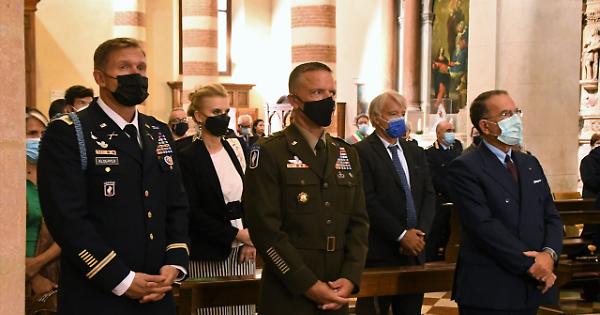 Tra gli altri in chiesa, il col. Kloepper e il questore Messineo in primo piano.