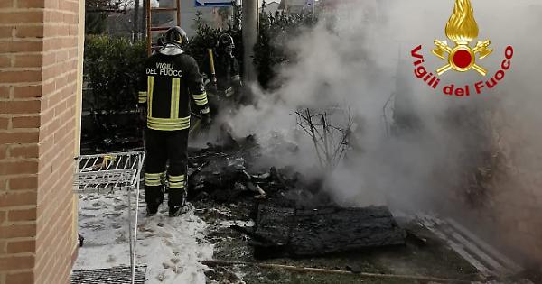 A Magrè nel pomeriggio incendio di una casetta in legno nel cortile di un’abitazione: i vigili del fuoco spengono le fiamme che si stavano propagando alla parte sporgente del sottotetto.
