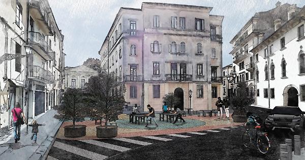 Due piazze collegate da un'area totalmente pedonale in cui i cittadini si riappropriano di uno spazio urbano ora sostanzialmente occupato dai posti auto: così il progetto primo classificato del concorso di idee "Centralità urbane" ha immaginato il contesto di piazzetta Santi Apostoli, contra' Santi Apostoli e piazzola San Lorenzo. La proposta, formulata dagli architetti Jacopo Agnolazza e Giovanni Gualdrini di Milano, si è aggiudicata il primo premio del concorso perché, più delle altre, ha centrato l'obiettivo della “call for ideas” lanciata dall'assessorato alla mobilità nei mesi scorsi. La richiesta, infatti, era proporre soluzioni che aumentassero la sicurezza urbana e la qualità della vita di uno dei 23 siti individuati dall'amministrazione, nell'ottica di una "città a 15 minuti" in cui tutti i servizi siano a disposizione dei cittadini a una distanza massima di un quarto d'ora in bicicletta o a piedi. La proposta prima classificata prevede nelle due piazzette un'area ping pong e uno spazio libero per le attività temporanee, collegati da un disegno in pianta che diventa una pista per il gioco dei bambini. Una lunga seduta può accogliere spettatori di una manifestazione, altre sedute favoriscono momenti di aggregazione. Aiuole, fontane, rastrelliere per le biciclette completano l'arredo urbano. È prevista la colorazione reversibile dell'asfalto che abbraccia non solo l'area di progetto, ma anche la vicina fermata del trasporto pubblico che viene così integrata in un sistema unitario.