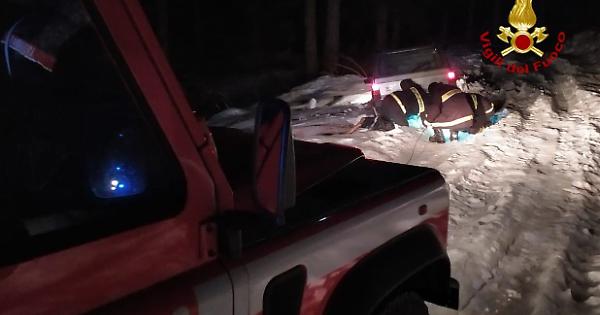 Nella notte fra sabato e domenica intervento dei vigili del fuoco in località Val Magnaboschi a Cesuna per soccorrere una famiglia di due adulti e due bambini rimasti impantanati con l’auto nella neve.