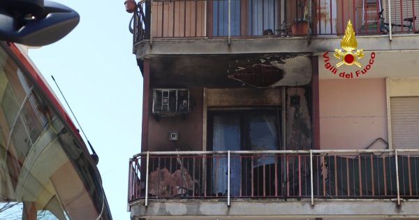 Un'immagine dell'incendio scoppiato in un appartamento in viale San Lazzaro