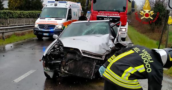 I vigili del fuoco accorsi a Pojana per l'incidente hanno estratto i feriti dalle auto