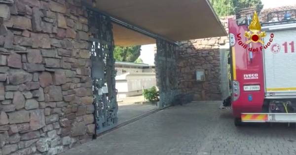 Un'immagine dell'ingresso del cimitero di Vicenza dove sono intervenuti i vigili del fuoco