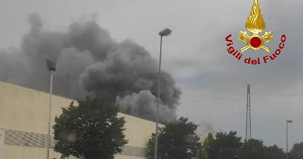 Le fiamme dell'incendio si sono estese al tetto dell'azienda Itipack di Villaverla
