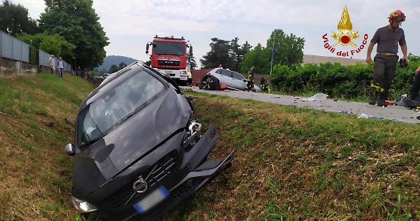 Un'immagine dello scontro a Sarego: una delle due auto è finita fuori strada