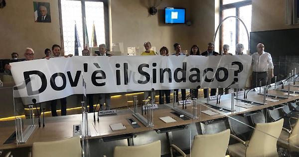 La minoranza resta da sola in Consiglio comunale e attacca la maggioranza, e specificamente il sindaco, con uno striscione. Come promesso, infatti, la maggioranza non s'è presentata alla riunione del Consiglio comunale che era stato convocato, come richiesto dalle minoranze, per discutere del "licenziamento" dell'assessore Tosetto. La richiesta era del tutto regolare per il numero delle firme presentate e infatti la riunione è stata convocata. Ma i capigruppo di maggioranza, come si può leggere qui, avevano già avvertito che avrebbero disertato il consiglio comunale in quanto la discussione richiesta non era urgente ma soltanto strumentale, quindi si poteva attendere il regolare consiglio prossimo venturo. La minoranza, quindi, s'è ritrovata da sola in sala Bernarda con la riunione saltata per mancanza del numero legale: assieme agli 11 del centrosinistra (mancava solo Pupillo per motivi giustificati) si sono aggiunti Berengo e Barbieri del gruppo misto (Lolli era fuori città). La riunione è saltata. Ma i presenti hanno alzato un maxi striscione contro Rucco su cui era scritto: "Dov'è il sindaco?". La mossa successiva è stata di andare a denunciare l'accaduto al prefetto Signoriello. Tra il primo e il secondo appello dei consiglieri, sono intervenute le consigliere Balbi e Barbieri con due dichiarazioni. In sala era presente il presidente del Consiglio comunale, Sorrentino.