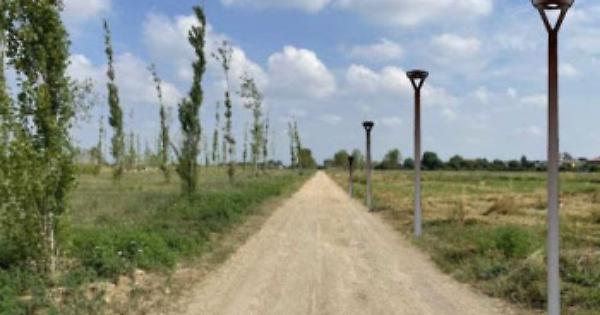 Un'immagine delle piste ciclopedonali del parco della pace illuminate