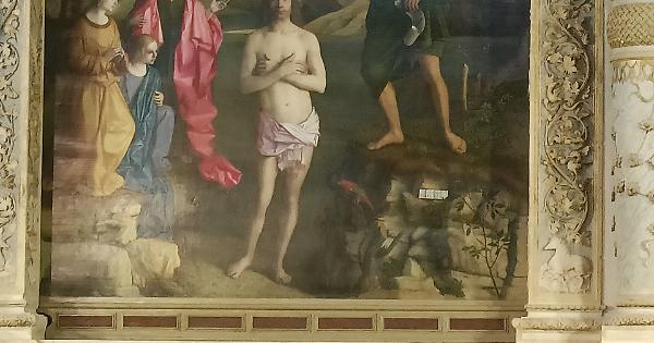 Un particolare del "Battesimo di Cristo" a Santa Corona