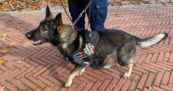 Aria, il cane antidroga della polizia locale di Vicenza, ripreso in Campo Marzo