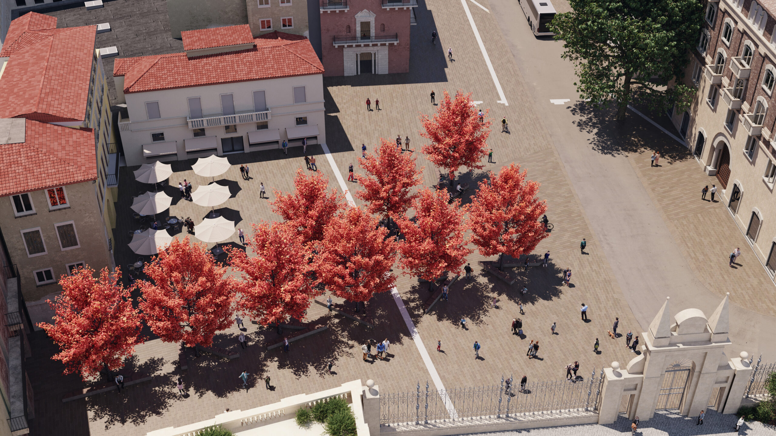 Un'immagine del progetto per sistemare piazzale De Gasperi con gli alberi