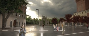 Piazzale De Gasperi pieno di nuvole nere in un'immagine del progetto molto azzeccata