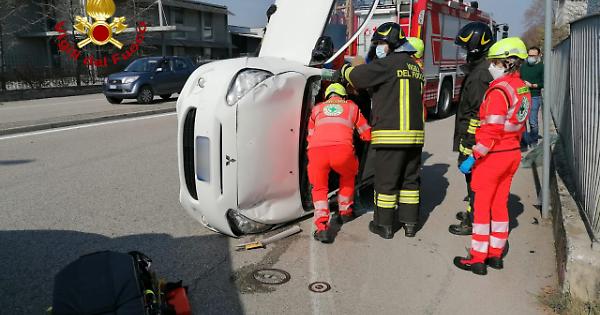 Incidente nel primo pomeriggio a Vicenza in zona industriale tra viale della Tecnica e viale dell'Economia: due auto si sono scontrate e una si è ribaltata. Sul posto i vigili del fuoco che hanno lavorato con impegno per mettere in sicurezza i mezzi e per estrarre una giovane donna che era alla guida della Fiat Punto bianca. La donna è stata subito presa in cura dal personale del SUEM 118 che l'ha trasportata al San Bortolo. Ferite non gravi. Illeso l'atro automobilista.