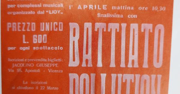 Franco Battiato presentò a Vicenza nel 1973 il suo "Pollution". Il biglietto per il concerto costava 600 lire