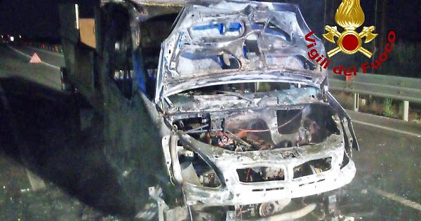 L'auto compattatore bruciato questa notte a Breganze lungo la Nuova Gasparona