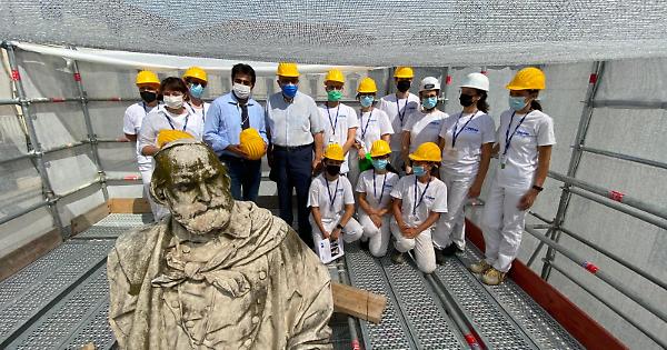 Il ciclo di restauri che ha interessato le statue del centro storico si sposterà, a partire da fine agosto, sul monumento dedicato a Vittorio Emanuele II in piazza Duomo, nel quale si vedranno all’opera 16 studenti del primo anno del corso.