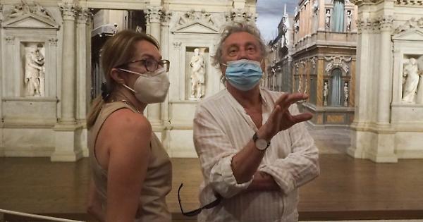 Enzo Iacchetti ha visitato il teatro palladiano avendo come guida l'assessore alla cultura Simona Siotto. L'attore e comico ha particolarmente apprezzato il gioiello architettonico di Andrea Palladio e si è soffermato anche a vedere "Pop- Palladio Olimpico Project", lo spettacolo di suoni e luci.