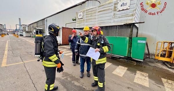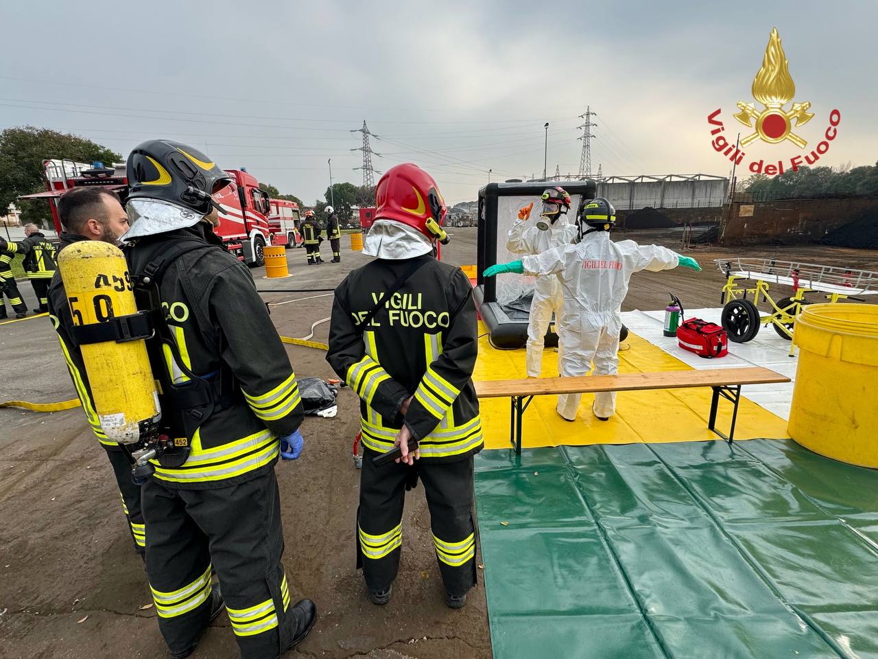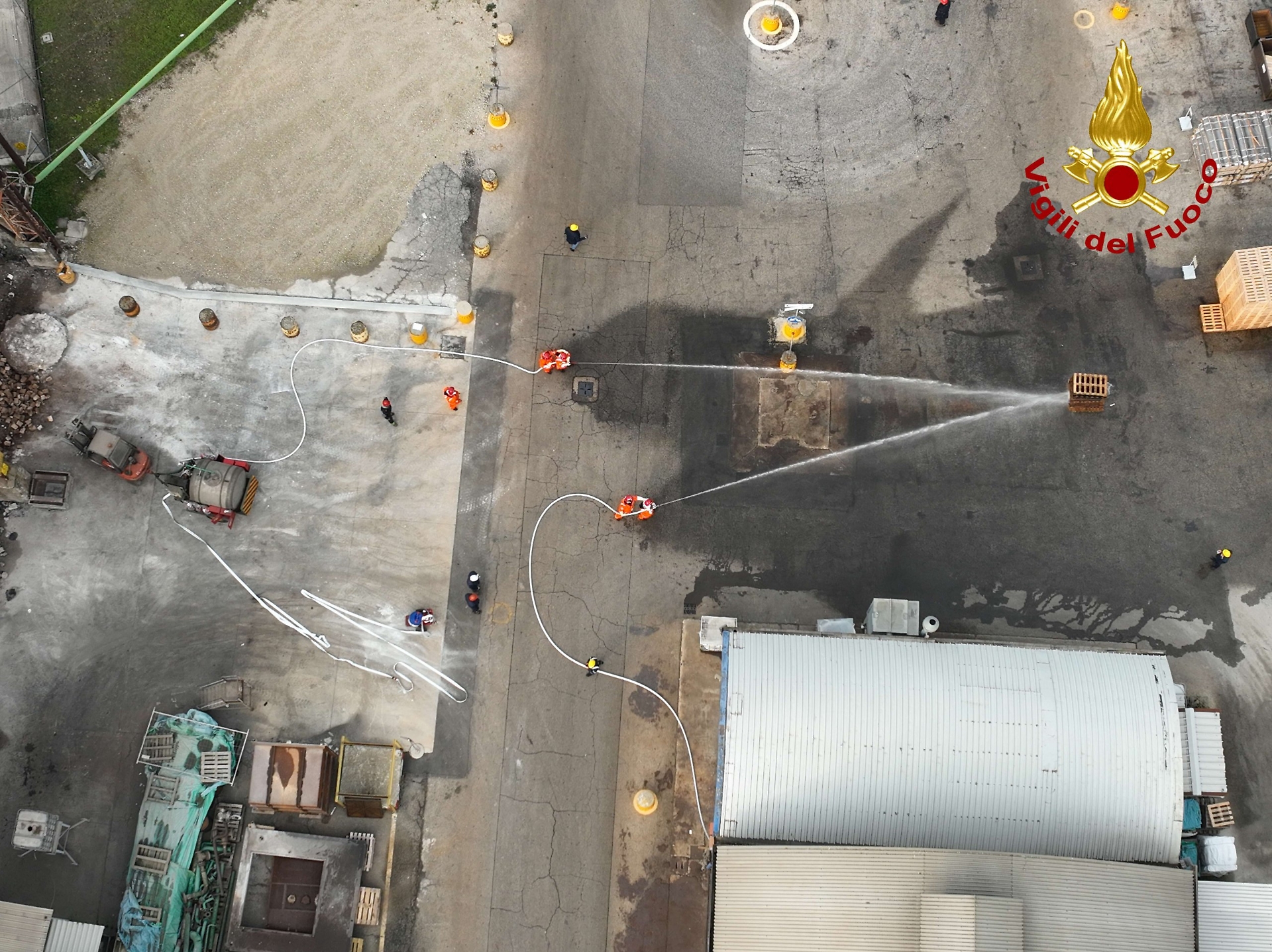 I Vigili del fuoco di Venezia hanno operato con squadre di terra e con il nucleo NBCR (specializzato in rischi chimici e radiologici), intervenendo su un incendio simulato originato dal surriscaldamento delle batterie di un carrello elevatore in movimento, con dispersione di polveri di zinco e stagno nell’aria. Durante l’esercitazione è stato anche previsto il soccorso a un operaio ferito, trasportato fuori dallo stabilimento.
