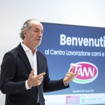 Alcuni numeri che descrivono l’attività di TANN, il Centro Lavorazione Carni e Salumi di Aspiag Service, concessionaria dei marchi Despar, Eurospar e Interspar per il Triveneto, l’Emilia-Romagna e la Lombardia, situato a Monselice all’interno del più ampio polo logistico Agrologic. Alla visita istituzionale del Centro che si è svolta oggi, venerdì 8 marzo, hanno partecipato il Presidente della Regione Veneto Luca Zaia, Paul Klotz, Presidente di Aspiag Service Despar,Martin Niederkofler, Direttore di TANN e Giovanni Taliana, Direttore Regionale Veneto di Aspiag Service Despar insieme ai vertici di Aspiag Service Despar e i rappresentanti delle istituzioni locali, provinciali e regionali, e delle associazioni di categoria del mondo dell’industria, del commercio e dell’agricoltura.