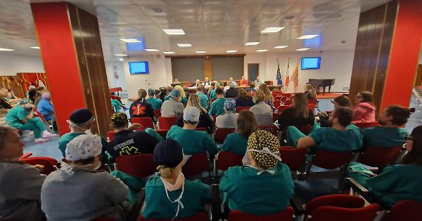 In mattinata si è tenuta l'assemblea dei lavoratori nella sala convegni dell'ospedale, promossa dalle sigle sindacali Fp Cgil Treviso, Cisl Fp Belluno Treviso, Uil Fpl, Fials, Nursing Up e Nursind. Temi del dibattito erano la mancanza di personale, l’organizzazione del lavoro, anche in termini di tempi di spostamento all’interno della Cittadella della Salute e di sforamento delle liste operatorie, nonché discussioni sulle dotazioni tecniche. Sara Tommasin per FP CGIL Treviso