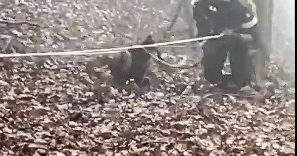 La squadra dei vigili del fuoco arrivata da Asiago, ha effettuato con un operatore SAF (Speleo Alpino Fluviale) una calata, raggiungendo il cane impossibilitato a risalire il pendio in alcuni punti quasi verticali.