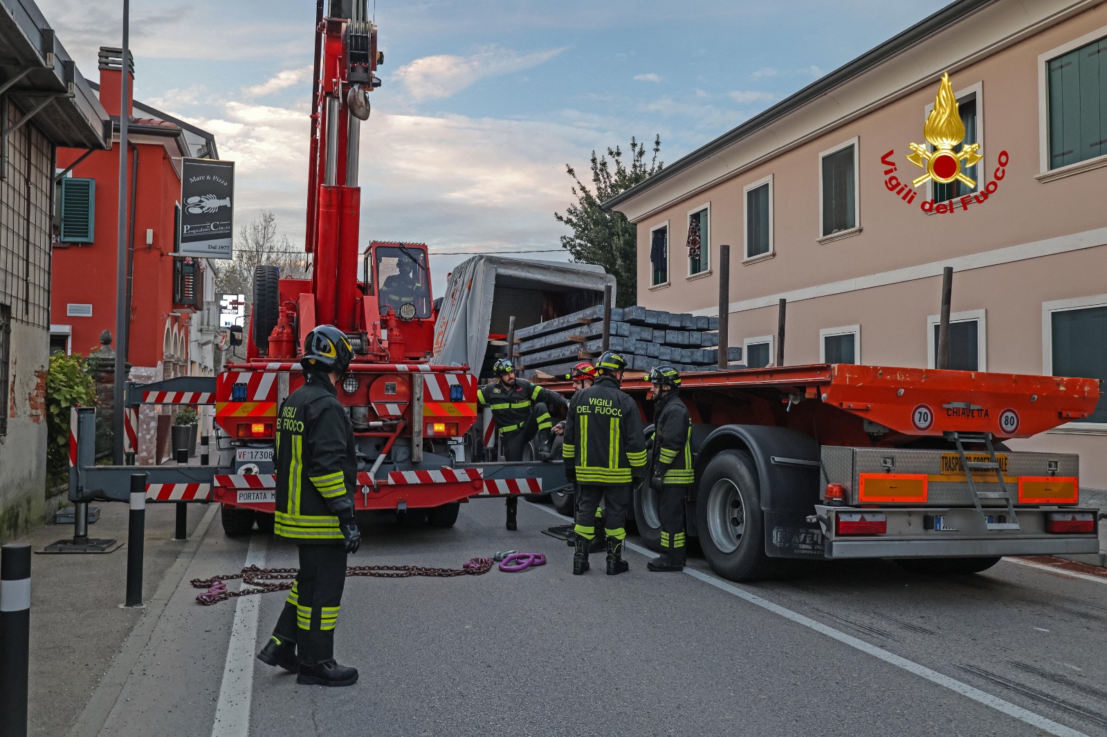 Sul posto sono giunti i vigili del fuoco di Vicenza con due automezzi, tra cui un'autogrù, per mettere in sicurezza il mezzo e avviare le operazioni necessarie al trasferimento del carico su un altro camion.