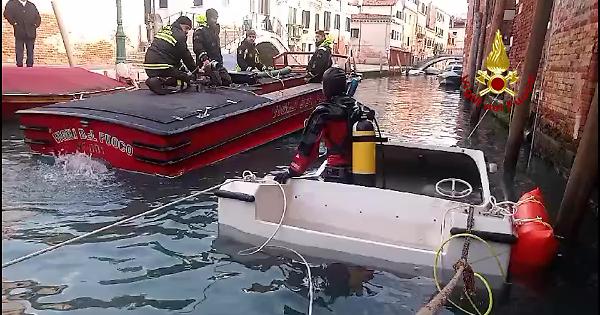 Un'imbarcazione è affondata a causa dell'innalzamento della marea a Venezia, nel Sestiere di Cannaregio, la mattina di venerdì 20 dicembre. La barca, ormeggiata in modo fisso a una briccola, è stata recuperata dai vigili del fuoco con l’aiuto del personale specializzato dei sommozzatori del nucleo di Vicenza.