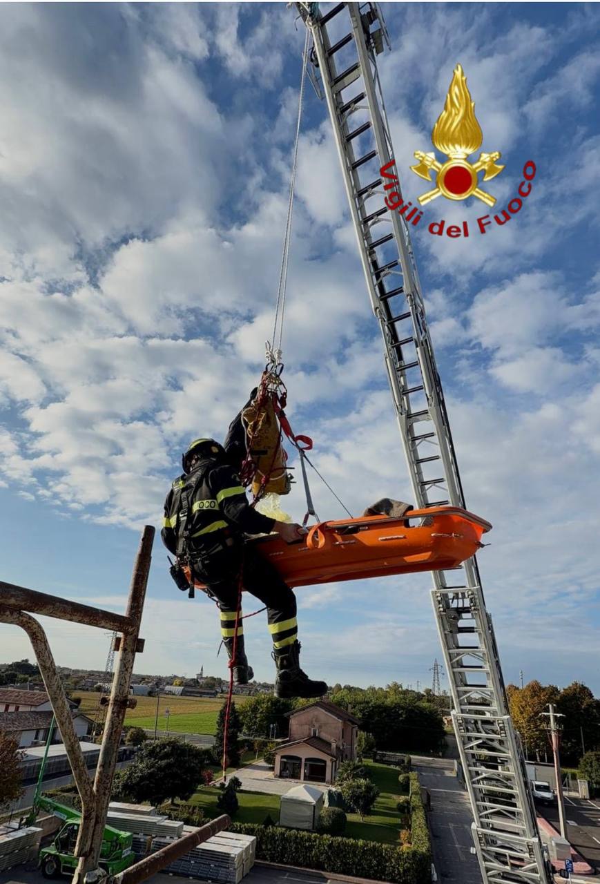 Una volta stabilizzato, l’operaio è stato trasferito in sicurezza grazie all’arrivo dell’Autoscala proveniente dalla sede centrale dei Vigili del Fuoco di Treviso. Le operazioni di recupero sono state eseguite dai membri specializzati del reparto SAF (Speleo Alpino Fluviale), che, utilizzando tecniche avanzate di recupero su corda, sono riusciti a portare l’operaio a terra in sicurezza.