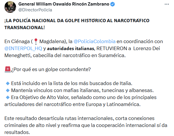 I Carabinieri di Venezia, con l’Interpol e la Polizia colombiana, hanno seguito da vicino i suoi contatti e i movimenti di denaro sospetti. La cattura è avvenuta la sera del 30 gennaio, in una villetta isolata di Santa Marta. Ne da annuncio con grande soddisfazione l'autorità colombiana.