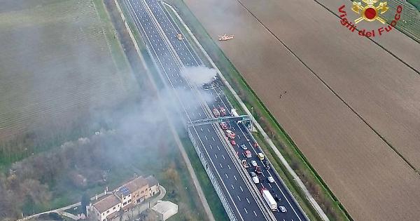 Una delle cisterne si è ribaltata finendo in fiamme, mentre l’altra trasportava anidride carbonica. A seguito dell’incidente l’autostrada è stata chiusa al traffico in entrambi i sensi di marcia per consentire le operazioni di soccorso e di messa in sicurezza dell’area.