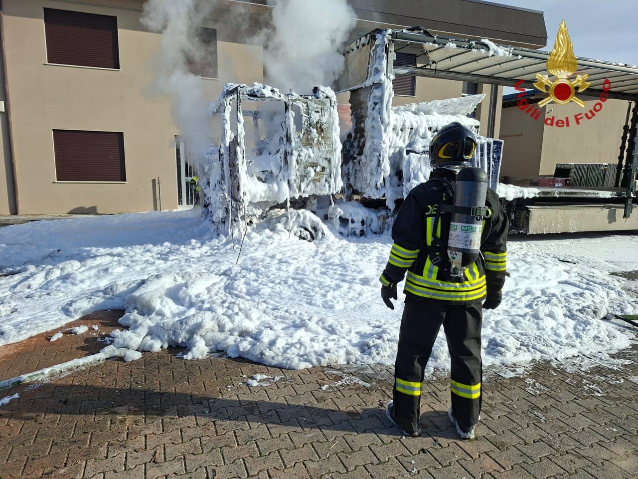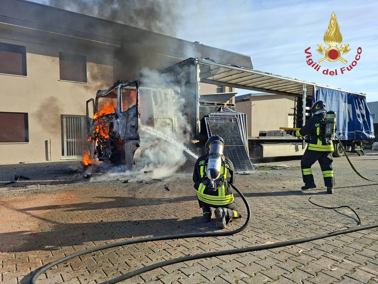 Stamattina, alle ore 08:30, i Vigili del Fuoco sono intervenuti presso un'azienda situata in corso Noblesville 3, a Tombolo, specializzata nell'installazione di impianti fotovoltaici, a seguito di un incendio che ha coinvolto un autoarticolato carico di materiale solare. Fortunatamente, nessuna persona è rimasta ferita.