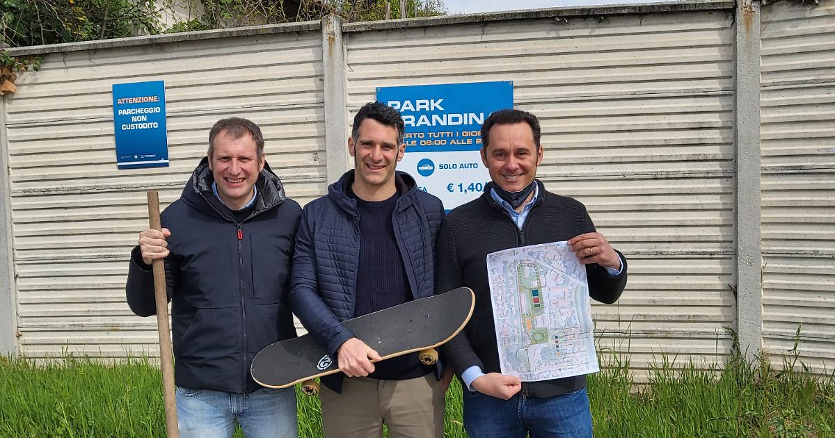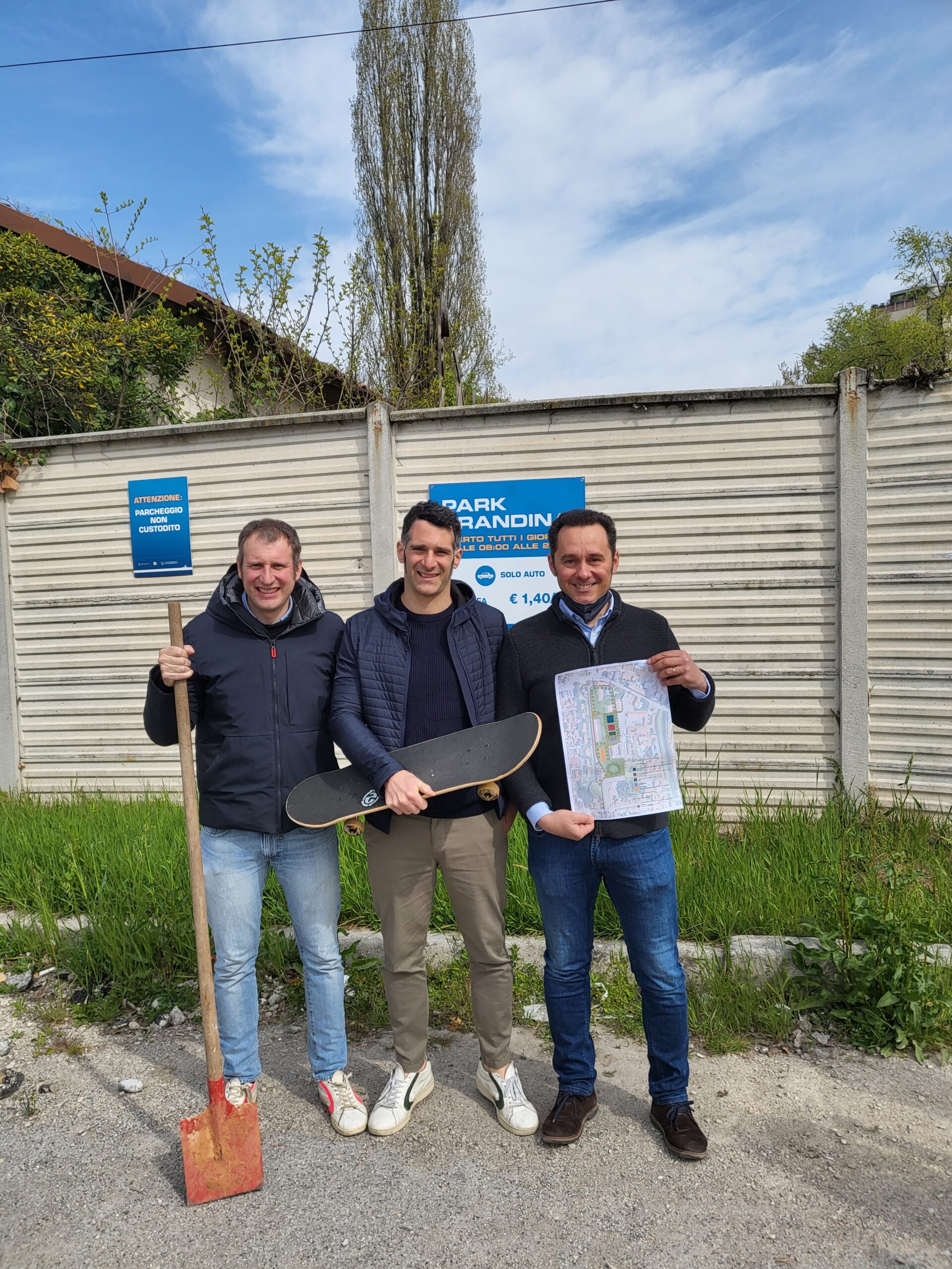 Con in mano un badile, una tavola da skateboard e le carte dell'area, Lorenzo Innocenti insieme ai candidati consiglieri, Gianmarco Donato e Andrea Mazzoleni, hanno presentato il progetto per l'area Prandina.