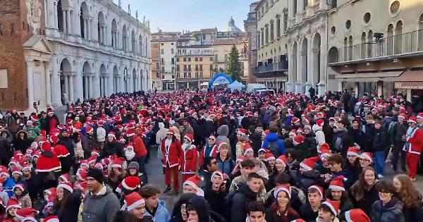 Nonostante il freddo pungente, sono stati circa 2.000 i partecipanti che questa mattina hanno preso parte alla 17° edizione della manifestazione “Corri Babbo Natale Corri”, che ha animato piazza dei Signori a Vicenza. L'iniziativa, ideata da Vicenza Press, l'associazione dei giornalisti locali, ha avuto come scopo la solidarietà, gemellandosi con due onlus che operano a favore dei bambini in difficoltà: il Villaggio Sos di Vicenza e l'Associazione Bambini Cardiopatici nel Mondo.