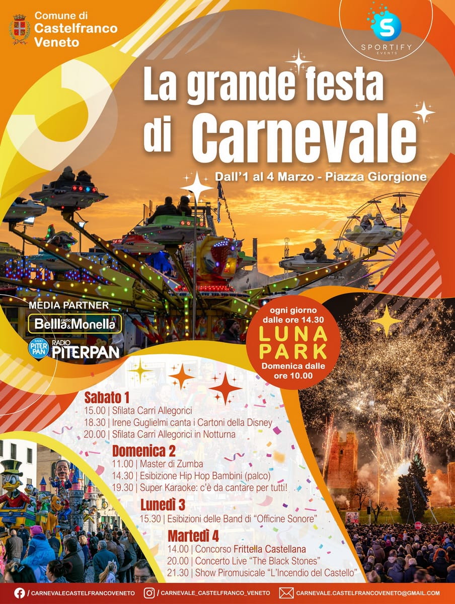 La città di Castelfranco Veneto si prepara ad ospitare la Grande Festa di Carnevale 2025, un evento che trasformerà Piazza Giorgione in un palcoscenico a cielo aperto, offrendo un'esperienza unica tra musica, spettacolo e tradizione. L'iniziativa, organizzata dal Comune con la co-organizzazione e gestione dell'A.S.D. Sportify Events, promette quattro giorni intensi di emozioni indimenticabili per grandi e piccini, con attività pensate per coinvolgere tutta la comunità.