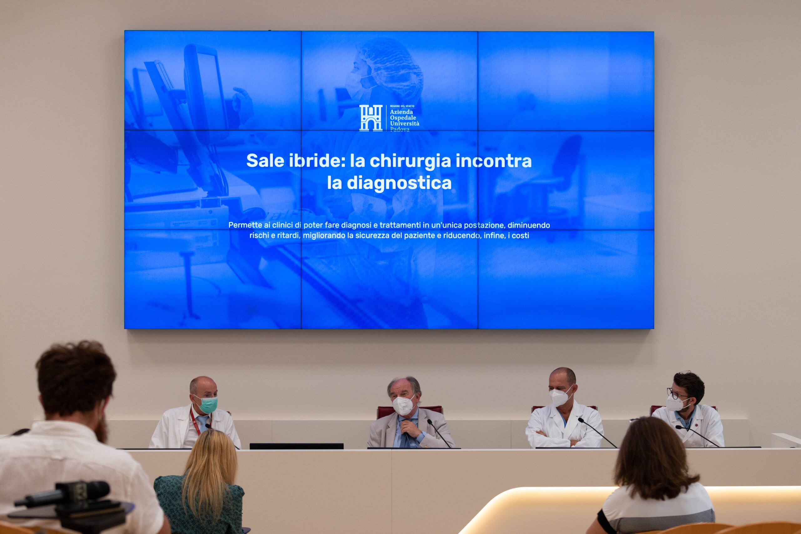 Un unico ambiente di lavoro chirurgico che combina attrezzature per la diagnostica per immagini con un tavolo chirurgico multifunzionale (500kg) a multifibra di carbonio adatto sia per l'angiografo( 1700 kg) che con la tac ( 2200 kg). La particolarità di questa nuova tecnologia sta nel fatto che il letto dialoga sia con l'angiografro che con la tac, ruoto di 180° senza dover spostare il paziente in caso di necessità. Il piano operatorio chirurgico non soddisfa solo le esigenze delle diverse discipline chirurgiche, ma anche le necessità derivanti dalle varie procedure di imaging avanzato. Una soluzione che permette ai clinici di poter fare diagnosi e trattamenti in un'unica postazione, diminuendo rischi e ritardi, migliorando la sicurezza del paziente e riducendo, infine, i costi. " Questa sala operatoria rappresenta una guida per riuscire a lavorare nettamente meglio - spiega il Direttore di Chirurgia Vascolare ed Endovascolare, Prof. Dott. Franco Grego - una sala dove si può fare l'intervento chirurgico che veda la componente chirurgica classica ma associata alla chirurgia endovascolare. E questo grazie al fatto che abbiamo dei macchinari - angiografi, tac ed ecografia - che consentono di avere tutte le informazioni immediate e in contemporanea. Per cui non c'è la necessità di associare delle informazioni perché sono tutte presenti contemporaneamente" Un investimento di 10 milioni di Euro da parte della regione che consente di sviluppare un processo di diagnosi e di cura di altissimo livello (3 milione destinati sono all'edilizia) ma che permetteranno di aumentare ulteriormente le 1.300 procedure di chirurgia vascolare ed endovascolare annue.