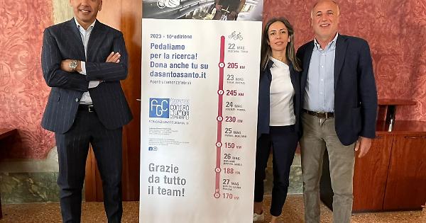 La 10° edizione della Da Santo a Santo, una lunga pedalata di raccolta fondi contro i tumori cerebrali - circa 1300 chilometri in soli sei giorni - partirà il 22 maggio da Pescara. Questo mini “Giro d’Italia” per la ricerca toccherà poi le città di Terni, Firenze, Parma, Bergamo, Riva del Garda per poi chiudere la “volata” a Padova, sabato 27 maggio, nel Sagrato della Basilica del Santo, come ormai tradizione vuole.