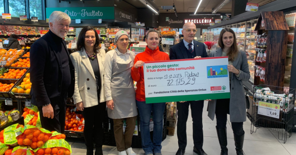 L’importo è stato raccoltograzie all'ormai tradizionale progetto natalizio “Un piccolo gesto: Il tuo dono alla comunità”. La raccolta fondi si è svolta dal 20 novembre all’11 dicembre in tutti i punti vendita della regione, registrando grande coinvolgimento da parte della clientela che, durante il pagamento alla cassa, ha scelto di arrotondare l’importo della propria spesa per oltre 93.000 volte. I fondi raccolti sono quindi stati destinati a sostenere l’organizzazione Città della Speranza, che da trent’anni opera in Italia ed Europa finanziando la ricerca scientifica nel settore pediatrico con l'obiettivo di migliorare le condizioni di cura, di assistenza e diagnosi dei bambini con patologie infantili. L’evento di consegna dell’assegno si è tenuto oggi nel punto vendita “Eurospar Cernaia” di Padova, a cui hanno partecipato Giovanni Taliana, Direttore Regionale Veneto di Aspiag Service Despar, il Generale Stefano Lupi, Amministratore Delegato dell’Istituto di Ricerca Pediatrica di Città della Speranza e Stefania Fochesato, Fundraiser di Città della Speranza. (continua a leggere dopo i video)