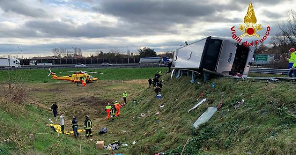 Dalle 12:50, i vigili del fuoco stanno operando in autostrada A13 subito dopo Padova zona industriale, lungo la rampa di accesso per l’A4 in direzione Milano per il rovesciamento di un bus: 4 i feriti portati ospedale. I vigili del fuoco accorsi da Padova, Mira e Venezia, hanno messo in sicurezza il bus con 60 passeggeri di nazionalità rumena e coadiuvato l’uscita delle persone rimaste all’interno del mezzo.