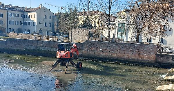 L’intervento, che ha ottenuto il parere favorevole da parte di Genio Civile di Treviso, Ente Parco Sile e Soprintendenza Archeologica si è reso necessario per agevolare i flussi idraulici da monte mediante la rimozione di fanghi accumulatisi nel tempo (l’ultimo scavo risaliva infatti al 2003). Dall'analisi di questi ultimi sono stati trovati rifiuti della categoria normali, per questo verranno solo essicati e smaltiti in una discarica comune. (Continua dopo la gallery...) Dopo la chiusura dei canali per l’abbassamento dei livelli delle acque per consentire i lavori di escavazione dell’alveo, si procederà all’asporto del limo di fondo per uno spessore di 40-50 centimetri nei punti di accumulo, e in seguito alla pulizia dei sottoponti mediante particolari attrezzature “canal-jet” per arrivare infine allo smaltimento del rifiuto fangoso.