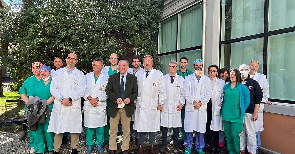 Un grande contributo, l'ha fornito il cardioanestesista dott. Demetrio Pittarello che attraverso l'ecocardiografia transesofagea tridimensionale 3D ha dato una perfetta visione della valvola mitrale e delle cavità cardiache. Mentre pittarello sono cardio anestesista è direttore di unità operativa di terapia intensiva cardiochirurgica nonché anche coordinatore ospedaliero per i trapianti scusi un attimo che arrivò un'altro cosa perché non proprio preso l'altro sì ecco qua c'è adesso ok bene dottore lei ha fornito per così dire l'occhio dei chirurghi dei all'interno del cuore certo e come ho detto già prima "E' una grande soddisfazione dal punto di vista personale perché essere consapevoli che attraverso questa metodica solo con una buona qualità di imaging è possibile eseguire questo intervento, ci si rende conto di una grande responsabilità - commenta il Dott. Demetrio Pittarello, direttore di unità operativa di terapia intensiva cardiochirurgica - Attraverso le potenzialità che abbiamo con questi strumenti siamo riusciti oggigiorno a migliorare la possibilità di poter intervenire e offrire quelle condizioni ideali per poter operare questo tipo di intervento" Tra tecnici specialistici della perfusione extracorporea, personale infermieristico di sala operatoria e operatori socio sanitari, hanno collaborato con l'equipe chirurgica, una decina di professionisti.