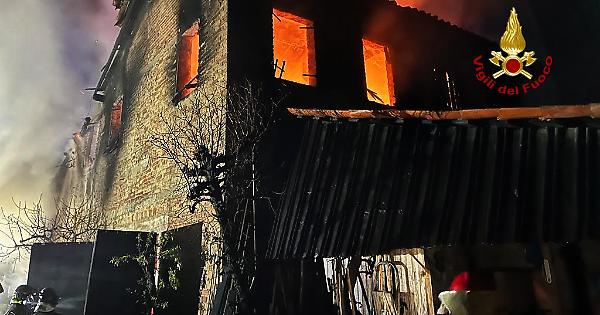 Nella notte i vigili del fuoco sono intervenuti per l'incendio di un casolare con all'interno 4 auto, di cui 3 d'epoca, e attrezzature agricole