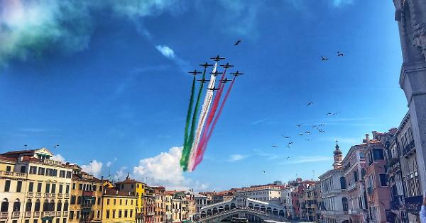 Le Frecce Tricolori hanno sorvolato Venezia per l’iniziativa “AM ringrazia l’Italia”.