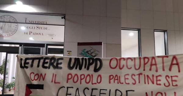 Infine l'appello alla Rettrice Daniela Mapelli, al corpo docenti e al personale tecnico amministrativo "Rivendiachiamo: che l'università, nella figura della Rettrice Mapelli, si esponga pubblicamente a sostegno del popolo palestinese e per un cessate il fuoco immediato;che l'università riconosca pubblicamente il genocidio della popolazione palestinese di cui è responsabile il governo israeliano; che l'università condanni pubblicamente le gravi violazioni dei diritti umani ed i crimini di guerra commessi dal governo di Israele: dall'uso del fosforo bianco, all'uccisione indiscriminata di civili, il bombardamento di scuole, ospedali, dei corridoi umanitari e l'assedio totale a cui è sottoposta in queste ore Gaza; che cessino immediatamente gli accordi tra l'Università di Padova e le università israeliane, in quanto complici del regime di oppressione coloniale di insediamento e di apartheid, di gravi violazioni di diritti umani, compreso lo sviluppo di armamenti, di dottrine militari e di giustificazioni "legali" per colpire indiscriminatamente tutto il popolo palestinese; che cessi ogni forma di collaborazione, partnership e rapporti tra l'università e le aziende che producono armi come la Leonardo S.P.A e la sua fondazione Med-Or, complici dell'armamento dell'esercito israeliano e del potenziamento tecnologico dell'industria bellica israeliana.Noi, studenti e studentesse di Padova, vogliamo riaprire al dibattito i nostri luoghi del sapere e fare un appello a tutto il mondo della formazione a non restare neutrale, pretendendo che si schieri dalla parte giusta della storia"