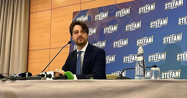 Poco prima delle 17.30 Alberto Stefani ha annunciato la vittoria alle regionali con un post sui social. Mezz'ora più tardi è comparso nella sala stampa al Crowne Plaza di Padova, dove ha tenuto la sua prima conferenza ufficiale da nuovo presidente del Veneto.