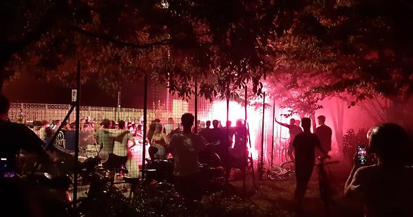 Grande festa martedì sera al parco Fornaci di Vicenza dopo la semifinale tra Italia e Spagna che è stata proiettata su un maxischermo della nuova struttura ricreativa all'interno dell'area verde tra il quartiere San Giuseppe e San Lazzaro. A seguire il match fin dalle 20 e 45 e fino a quasi mezzanotte vi erano circa 400 persone, ovviamente tutti all'aperto e con il giusto ditanziamento. Alla fine per la vittoria anche fumogeni da stadio come si vede nella foto. Il video è stato girato poco prima delle 21.